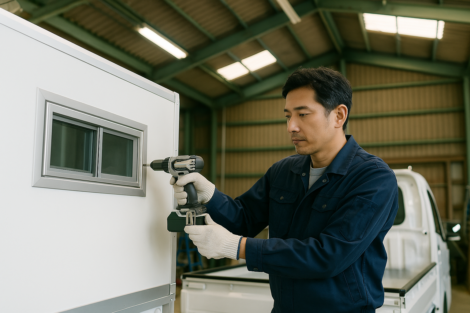 標準仕様(本体、2階ベッド、エアコン、自立架台) 軽トラは含みません。中古車でも新車でもOK |